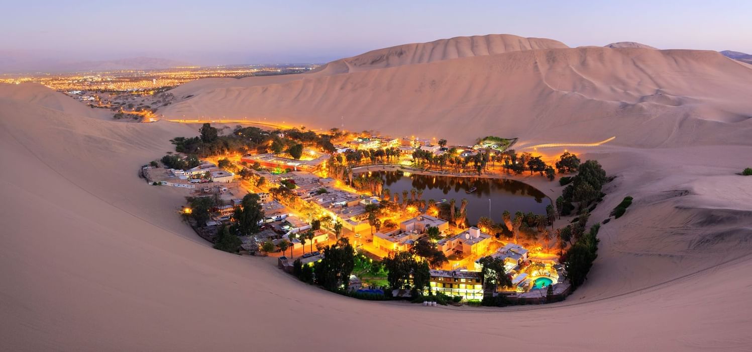 Ubicada a 15 minutos del hotel, la Laguna de la Huacachina es un verdadero oasis en el desierto que ofrece aguas verde esmeralda y abundante vegetación.